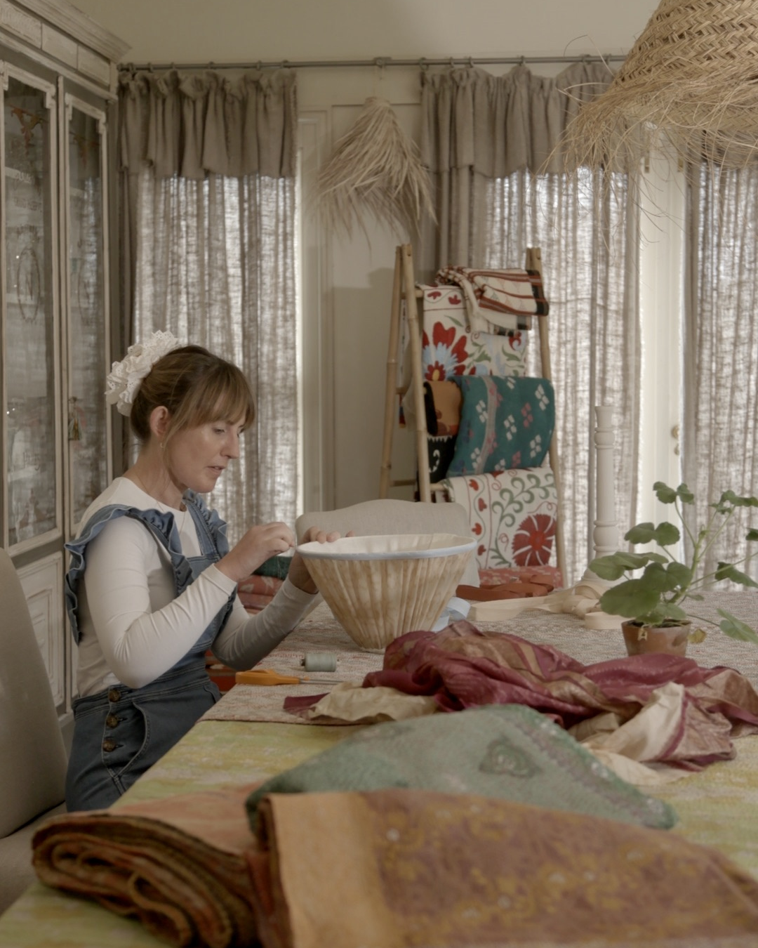 - Antique sari lampshade with coordinating trim, by Chloe Jonason