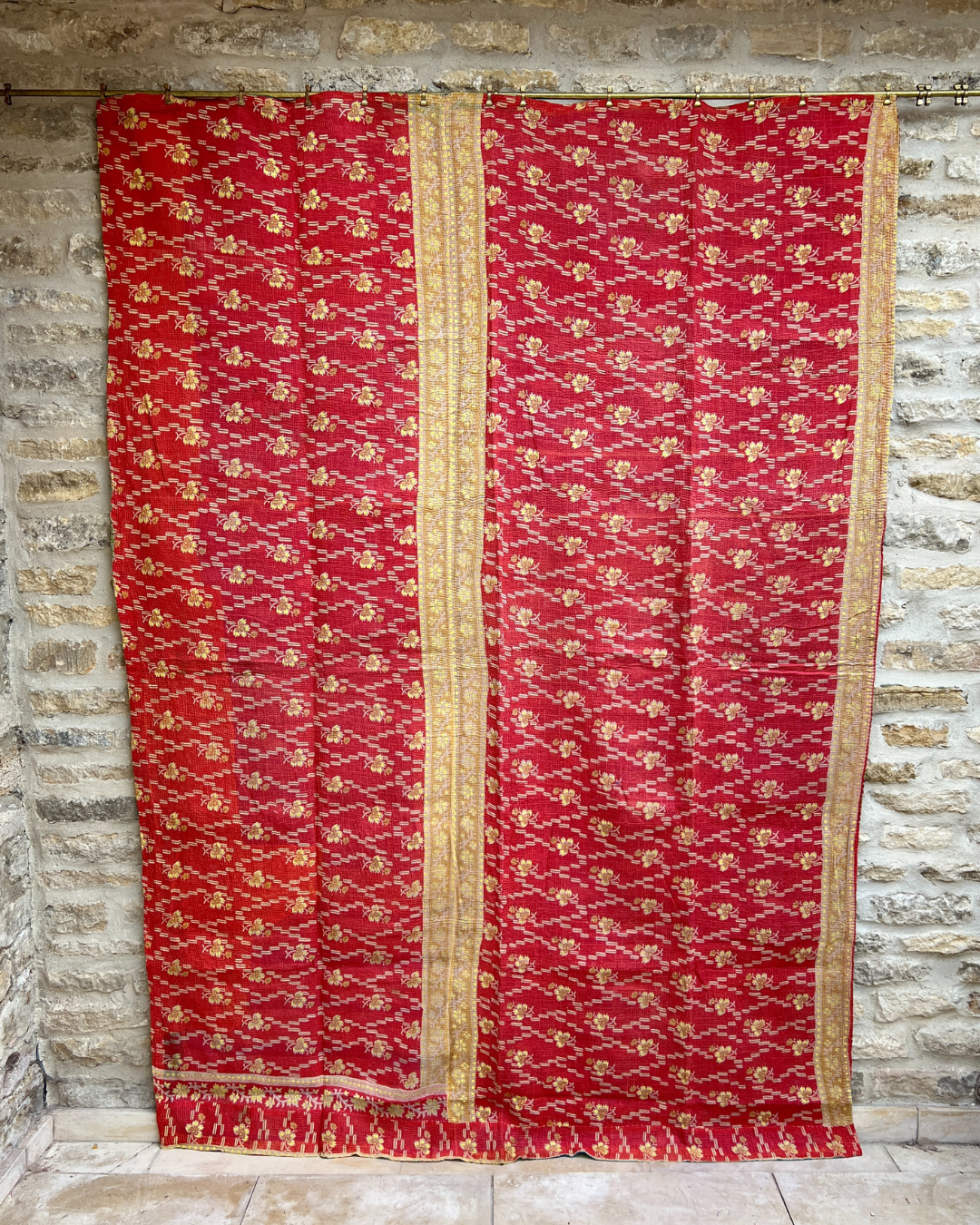 This one of a kind red, yellow and green quilt has been hand-picked by Chloe from India, ensuring the highest quality and authenticity. This delicious midweight vintage kantha quilt is crafted from numerous layers of vintage cotton saris all meticulously hand-sewn together.