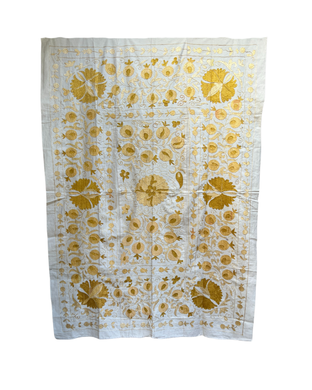 This Suzani has a rich history that is believed to be over 20 years, it is likely to carry endearing marks of time, such imperfections only enhance its unique character and add to its charm.