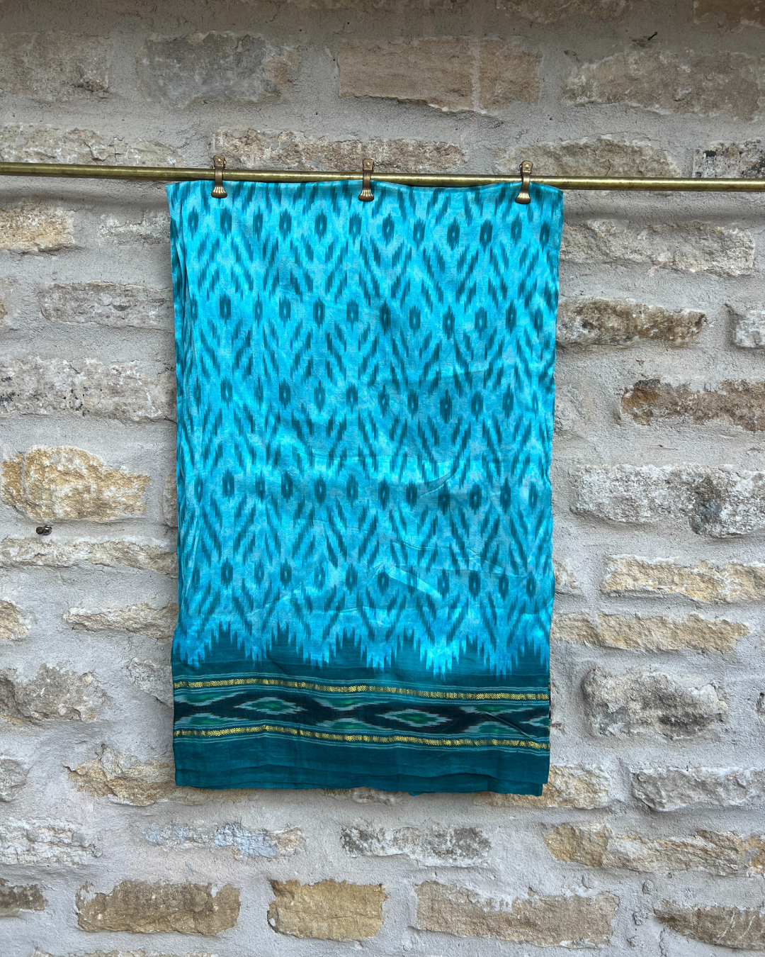 This jade and green Sari with diamond motifs has been hand picked with the utmost of care by Chloe from India and is made from 100% natural silk.